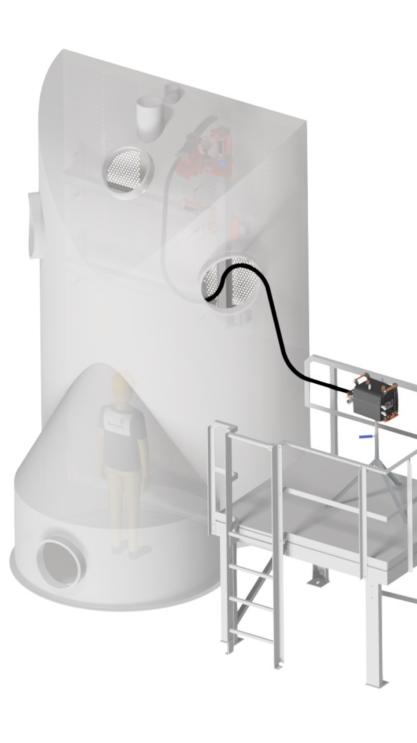 The Peinemann Condenser cleaning setup offers an optimal solution for accessing and servicing tight and difficult-to-reach exchangers such as condensers, owing to its compact and adaptable design. Specifically engineered for installation within constrained operational spaces, this setup can be affixed to condenser tube sheets effortlessly using specialized expander bolts, eliminating the need for additional scaffolding. Compatible with the 3-TLX model, it utilizes snorkel hoses to navigate and service even the most confined areas effectively. Furthermore, this setup is available with an optional camera system with air knife, enabling safe operation from a distance.